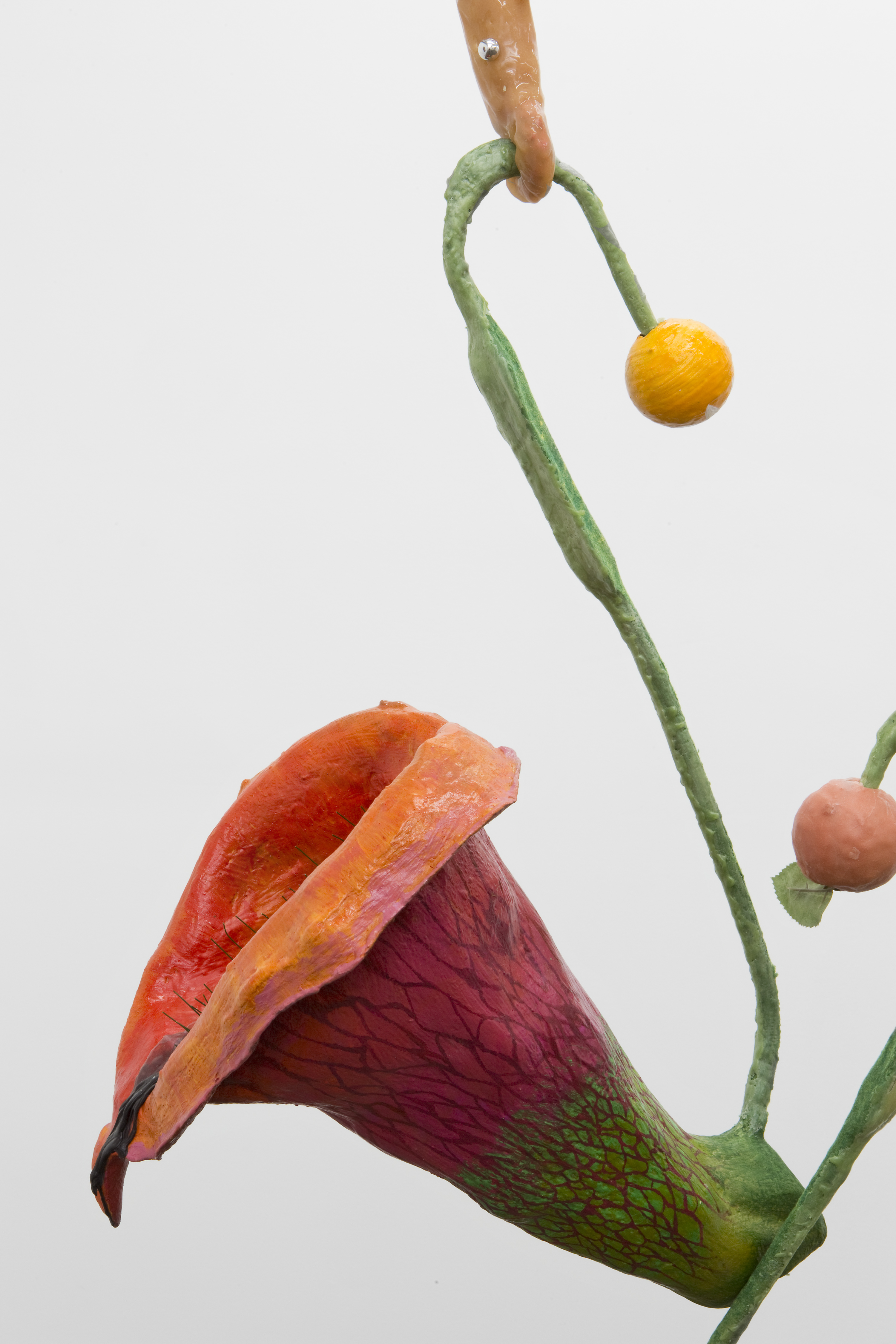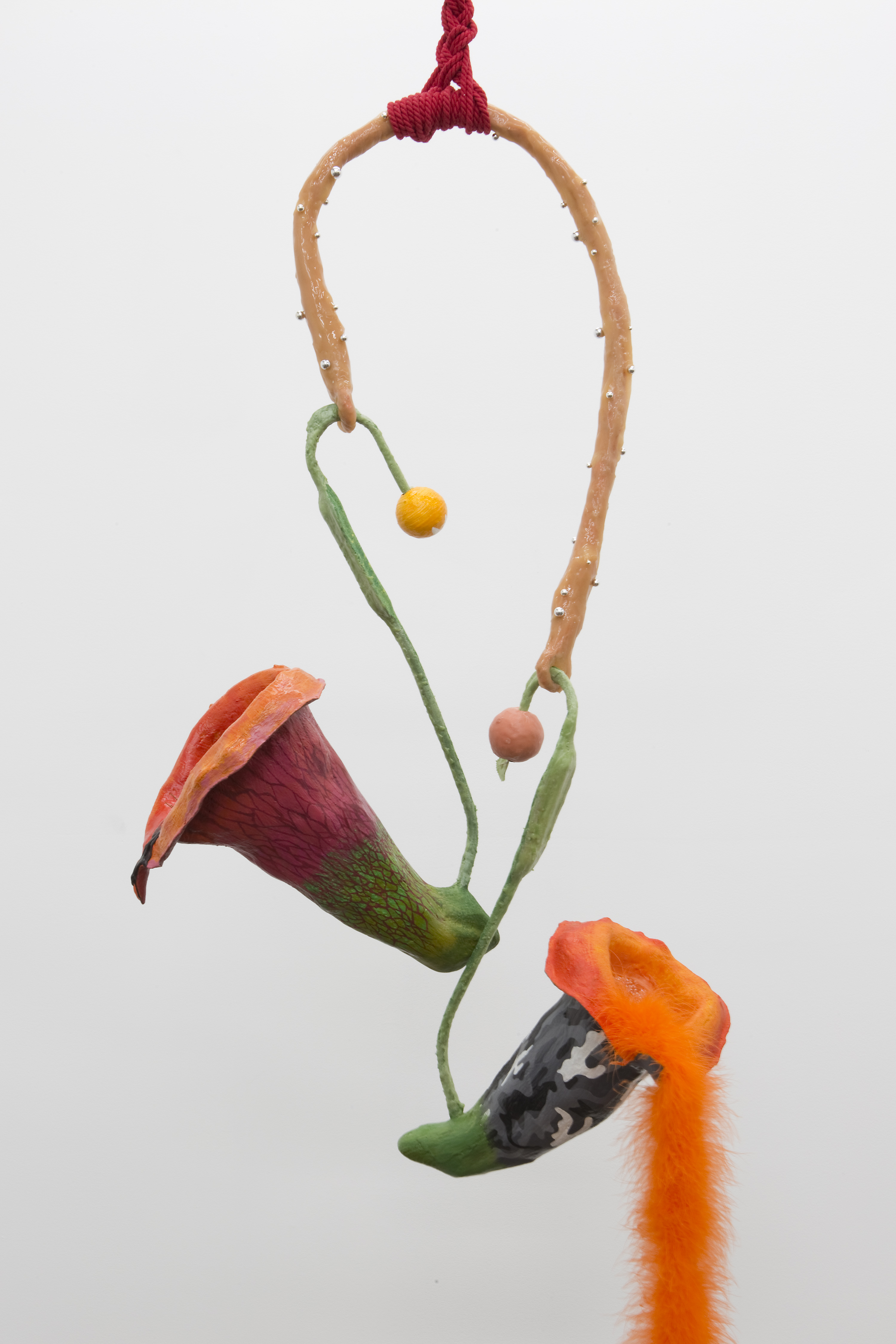 plaster, aqua resin, fiberglass, acrylic, wax, beads, wire, string, synthetic feathers, silicone, earrings, and flocking